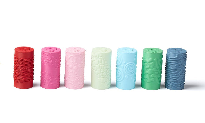 Gebruiksvriendelijk: De rollers zijn compact (ca. 6 cm lang) en ergonomisch gevormd voor kleine kinderhandjes, wat zelfstandig gebruik bevordert.